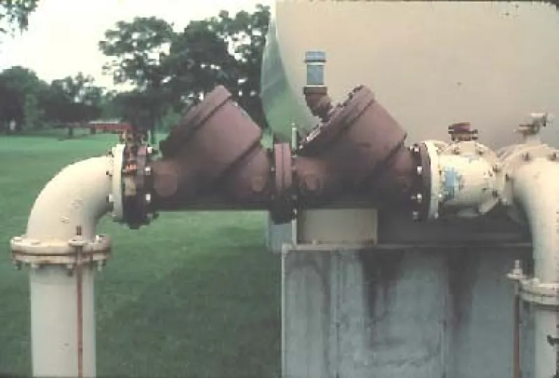 A double check valve used to protect a golf course irrigation system. Can also be used with center pivot systems but are much more expensive than chemigation check valves.