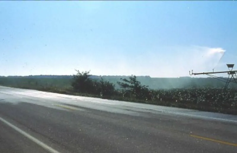 Set your endgun so it won't spray on a maintained road. It is a violation of North Dakota law to spray water from an irrigation system onto a maintained road, whether chemigating or not.