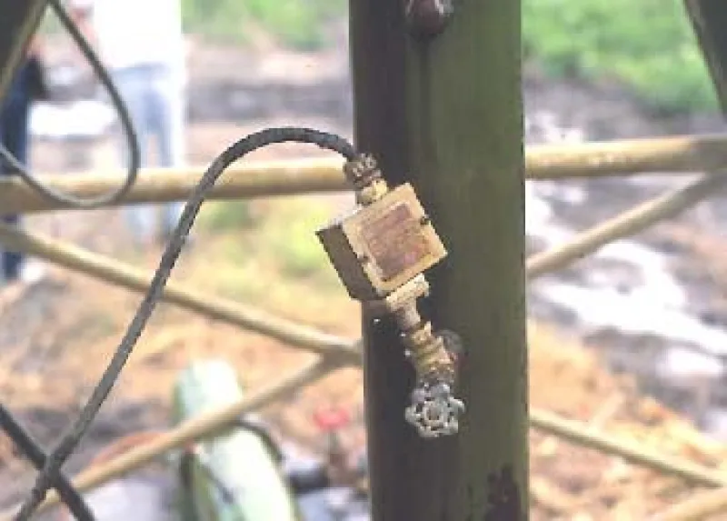 Typical chemigation check valve installation. In the foreground is a diesel fuel tank. The nitrogen and pesticide tanks are behind the chemigation check valve.