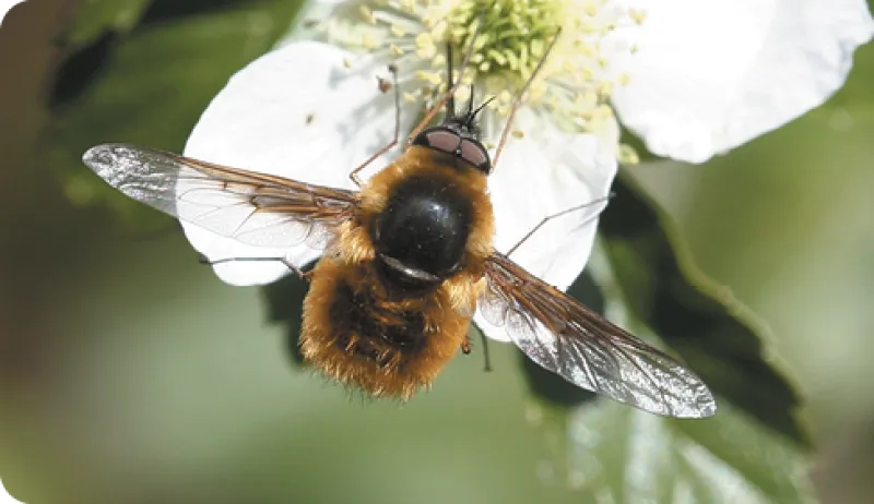 Another fly group that mimics bees is called the bee fly (Family Bombyllidae), which feeds on nectar and pollen as valuable pollinators (Figures 12a and b).