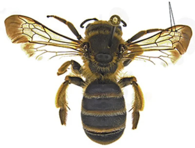 Bumble bees (Bombus spp.) are the most well-known of the native bee species (Figure 4). Their wide, fuzzy bodies seem to defy the laws of physics as they fly through the air. Of the 46 species native to North America, about 18 species call North Dakota home.