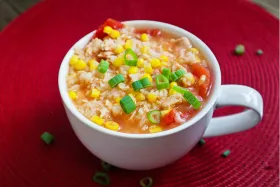 Makes four servings. Without toppings, each serving has 250 calories, 7 g fat, 18 g protein, 29 g carbohydrate, 4 g fiber and 620 mg sodium.