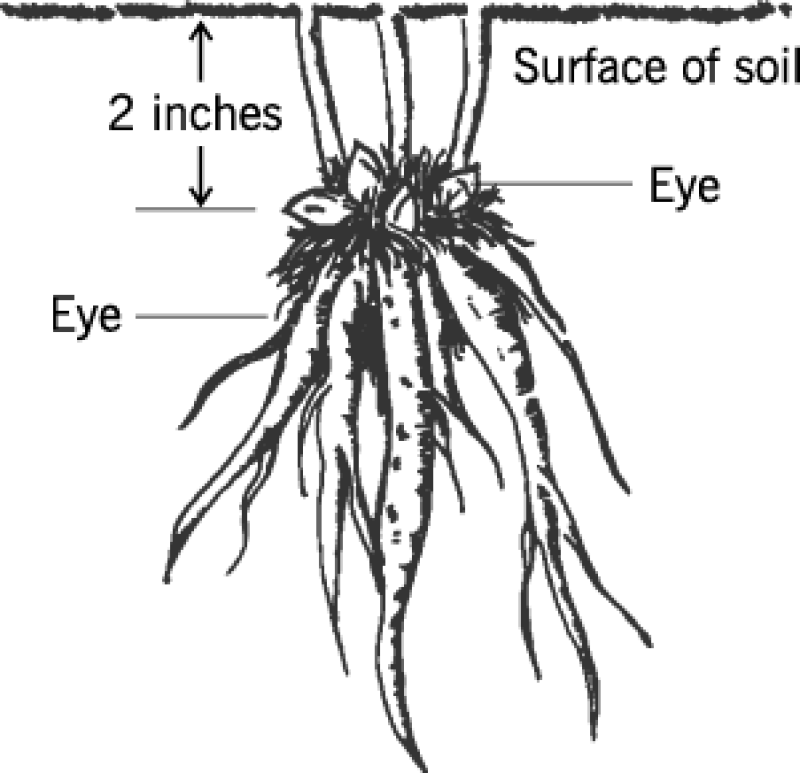 If your peonies have been planted too deeply, you may accelerate flowering by resetting them to the proper depth. But if they have been in place several years, they may be nearly ready to bloom because the plant “lifts” itself a little each year as it grows.